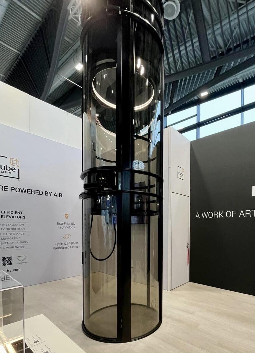 En plus de ses modèles emblématiques, PVE a présenté le Cube, une version compacte et silencieuse de son ascenseur pneumatique. Ce modèle s’annonce comme une solution accessible et innovante pour les projets résidentiels à budget maîtrisé.