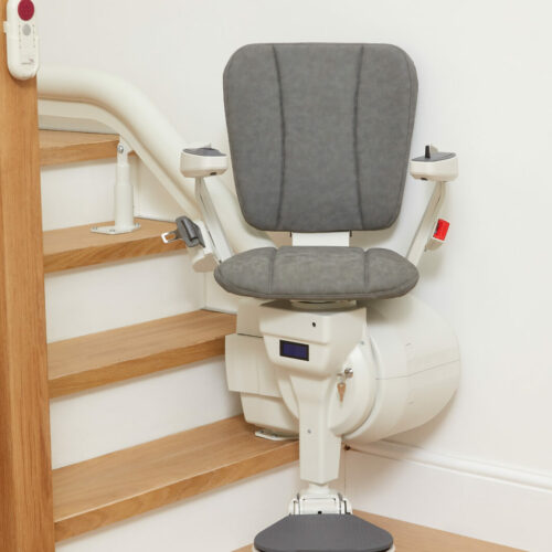 Certains modèles incluent aussi une fonction de secours. Par exemple, si votre appareil est équipé de cette option, un bouton facilement accessible sous l’accoudoir vous permettra de descendre en toute sécurité jusqu’en bas des marches.